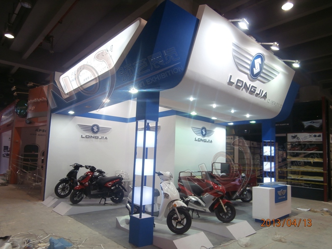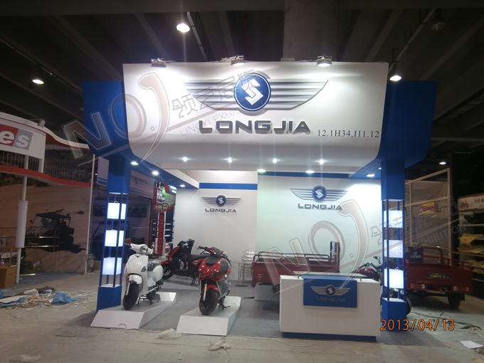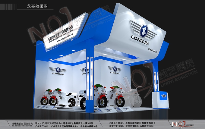 契合龍嘉摩托的品牌形象和產(chǎn)品特性,采用框型結(jié)構(gòu),再搭配燈具燈光的效果,襯托出展位超前、簡約的氛圍,突出一種融合、個性的時尚品味。