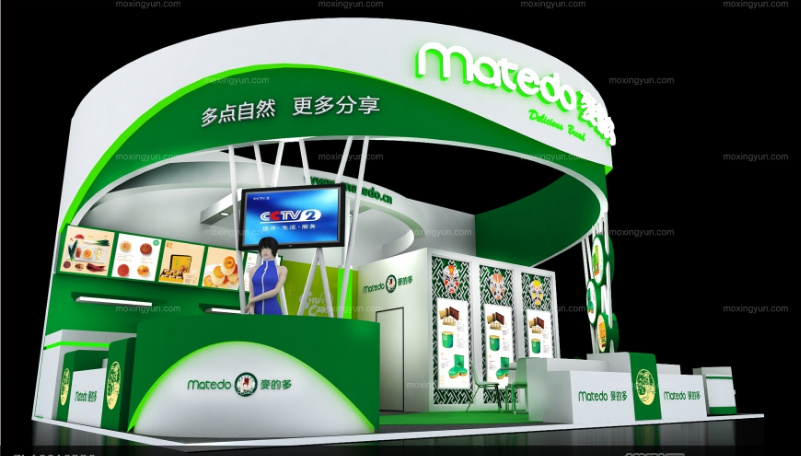 契合麥的多的品牌形象和產品特性,采用線條,再搭配燈具燈光的效果,襯托出展位簡約、舒適的氛圍,突出一種現代、高端的時尚品味。