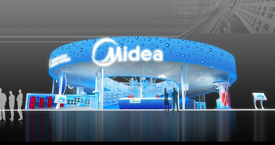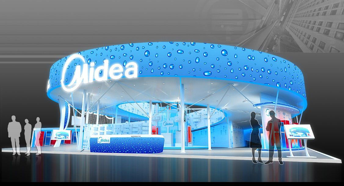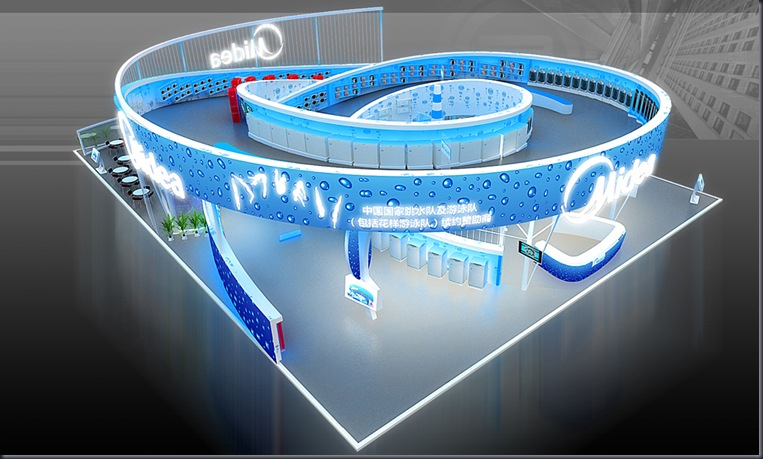 契合美的的品牌形象和產(chǎn)品特性,采用矩形結構,再搭配燈具燈光的效果,襯托出展位高端、時尚的氛圍,突出一種現(xiàn)代、大氣的時尚品味。