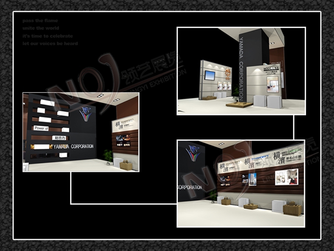 契合的山田品牌形象和產(chǎn)品特性,采用矩形結(jié)構(gòu),再搭配燈具燈光的效果,襯托出展位高端、莊重的氛圍,突出一種現(xiàn)代、歐美的時(shí)尚品味。