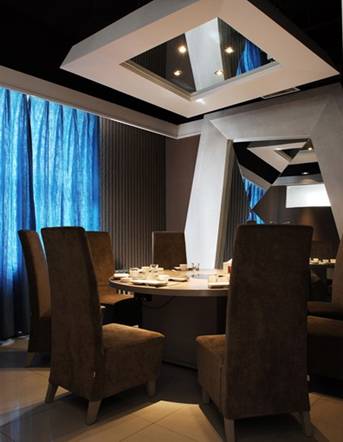 在對面的利用中,使用條形或整幅的鏡面玻璃形成虛中見實的視錯覺效果,是展示設(shè)計較為常用的一種視錯覺處理辦法。在陳列布置上巧妙的利用鏡子將有助于制造假象,在視覺上擴大空間范圍。此外鏡子還能產(chǎn)生一種虛幻的對稱效果。