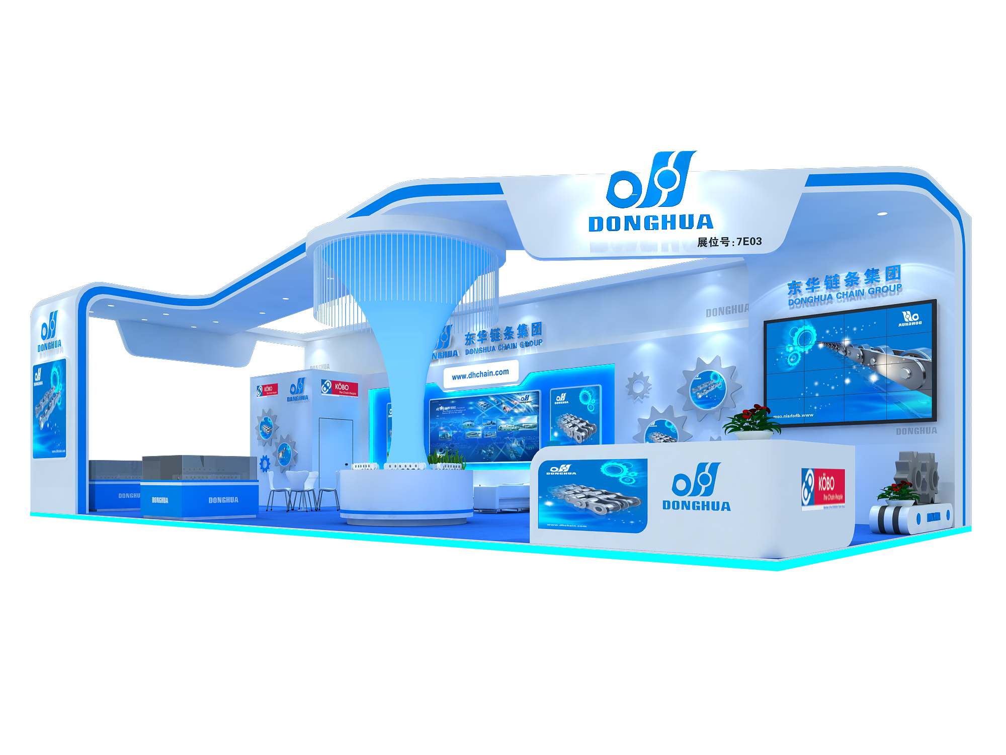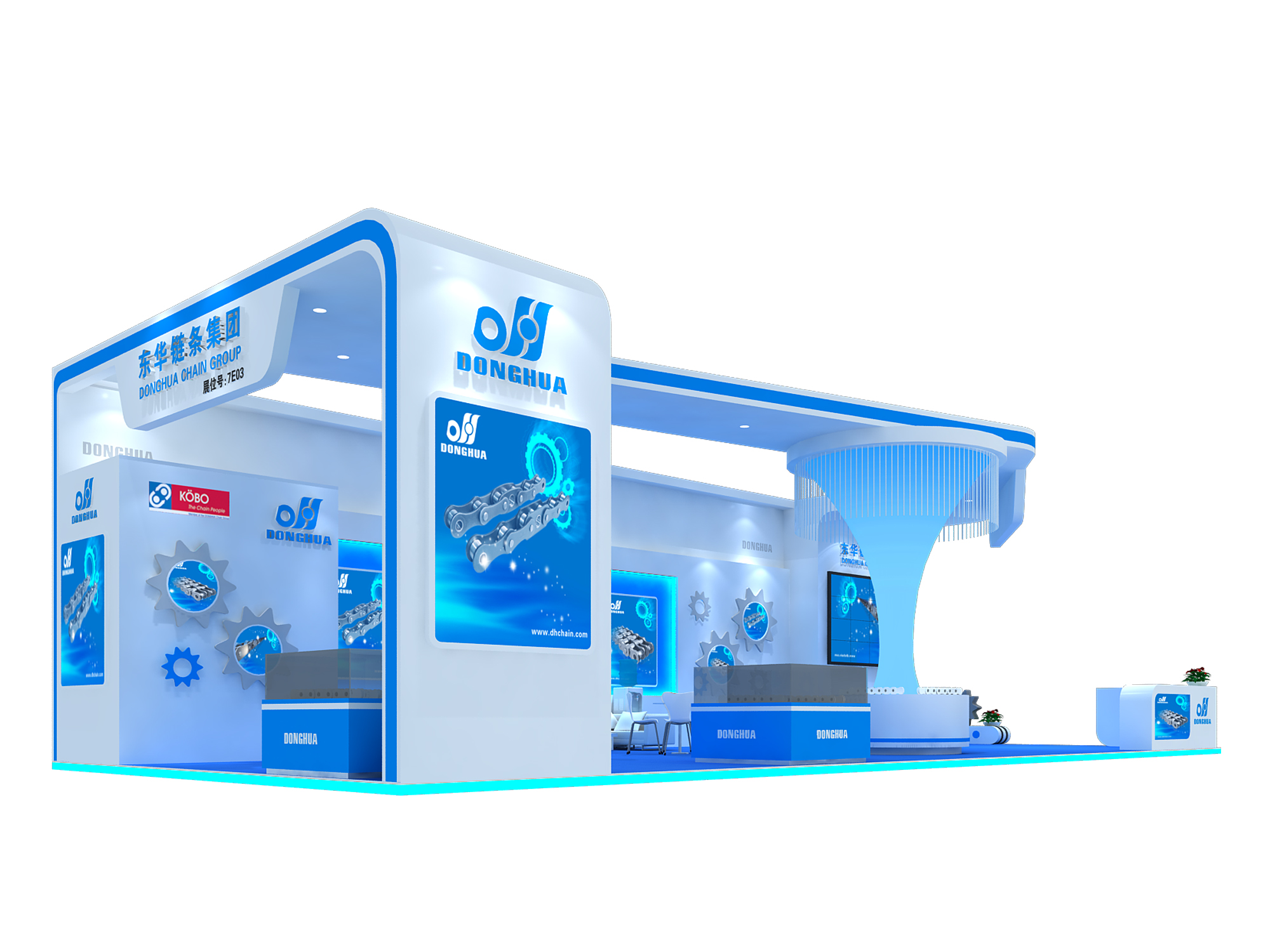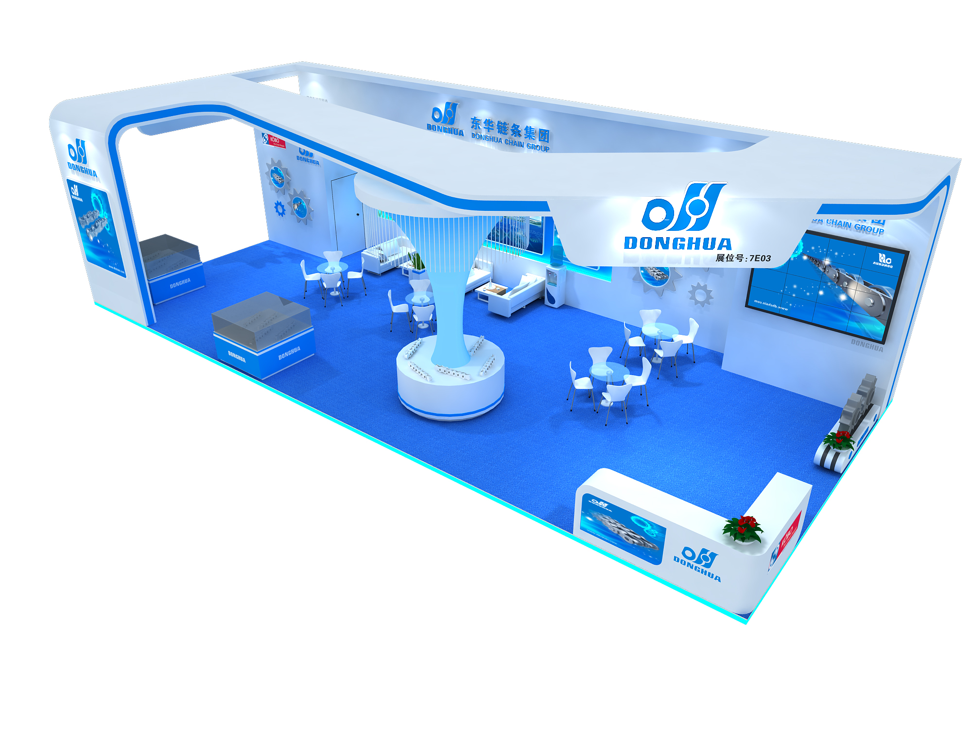 契合東華鏈條的品牌形象和產(chǎn)品特性,采用開(kāi)放式式的造型,再搭配燈具燈光的效果,襯托出展位現(xiàn)代、清新氛圍,突出一種現(xiàn)代、高端的時(shí)尚品味。