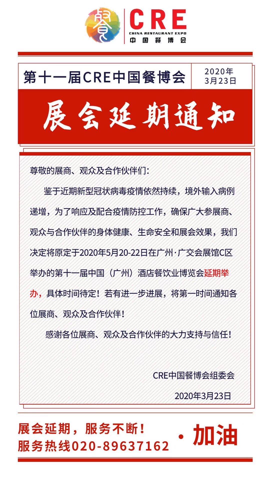 根據(jù)餐博會設(shè)計搭建公司領(lǐng)藝展覽了解到,根據(jù)新冠肺炎疫情的情況和展館的特殊變化調(diào)整,廣州餐博會將延期舉行。如需餐博會設(shè)計請聯(lián)系領(lǐng)藝展覽,希望我們能在餐博會搭建上為您添磚加瓦,祝各位朋友收獲多多,滿載而歸!
