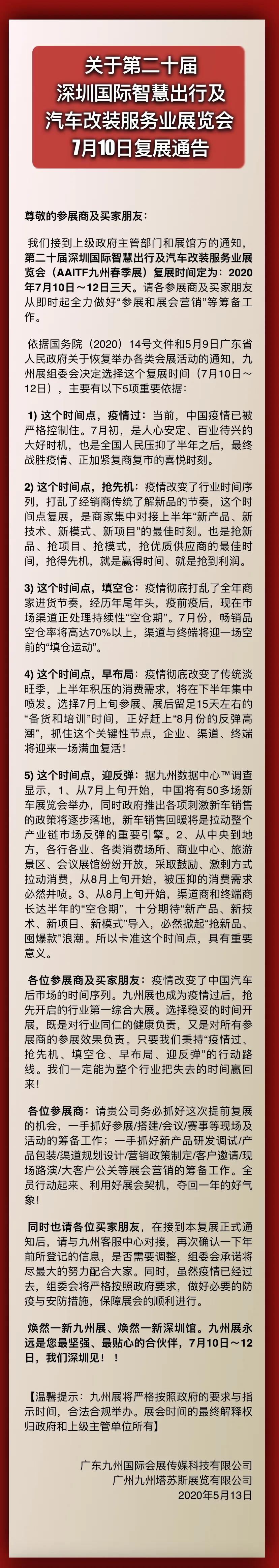 九州汽配展設(shè)計搭建公司領(lǐng)藝展覽了解到,AAITF,英文全稱為“Automotive Aftermarket Industry and Tuning Trade Fair ”,中文全稱為“汽車改裝服務(wù)業(yè)展覽會”將于2020年7月10-12日,在深圳國際會展中心(寶安)舉辦。如需展會設(shè)計請聯(lián)系領(lǐng)藝展覽,希望我們能在九州展搭建上為您添磚加瓦,祝各位朋友收獲多多,滿載而歸!