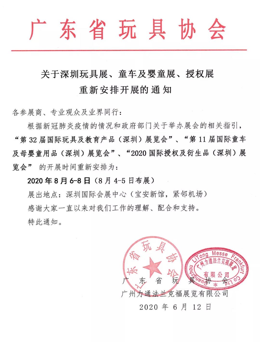 為進(jìn)一步促進(jìn)玩具、教育和嬰童及IP授權(quán)產(chǎn)業(yè)發(fā)展,為我國(guó)廣大兒童提供更多優(yōu)質(zhì)新穎的相關(guān)產(chǎn)品,引領(lǐng)新消費(fèi)提振內(nèi)需,繁榮國(guó)內(nèi)流通市場(chǎng),廣東省玩具協(xié)會(huì)、廣州力通法蘭克福展覽有限公司、法蘭克福展覽(香港)有限公司將于2020年8月6-8日,在深圳國(guó)際會(huì)展中心(寶安新館)共同舉辦“第32屆國(guó)際玩具及教育產(chǎn)品(深圳)展覽會(huì)”“第11屆國(guó)際童車及母嬰童用品(深圳)展覽會(huì)”“2020國(guó)際授權(quán)及衍生品(深圳)展覽會(huì)”(下統(tǒng)稱“深圳玩具展”)。