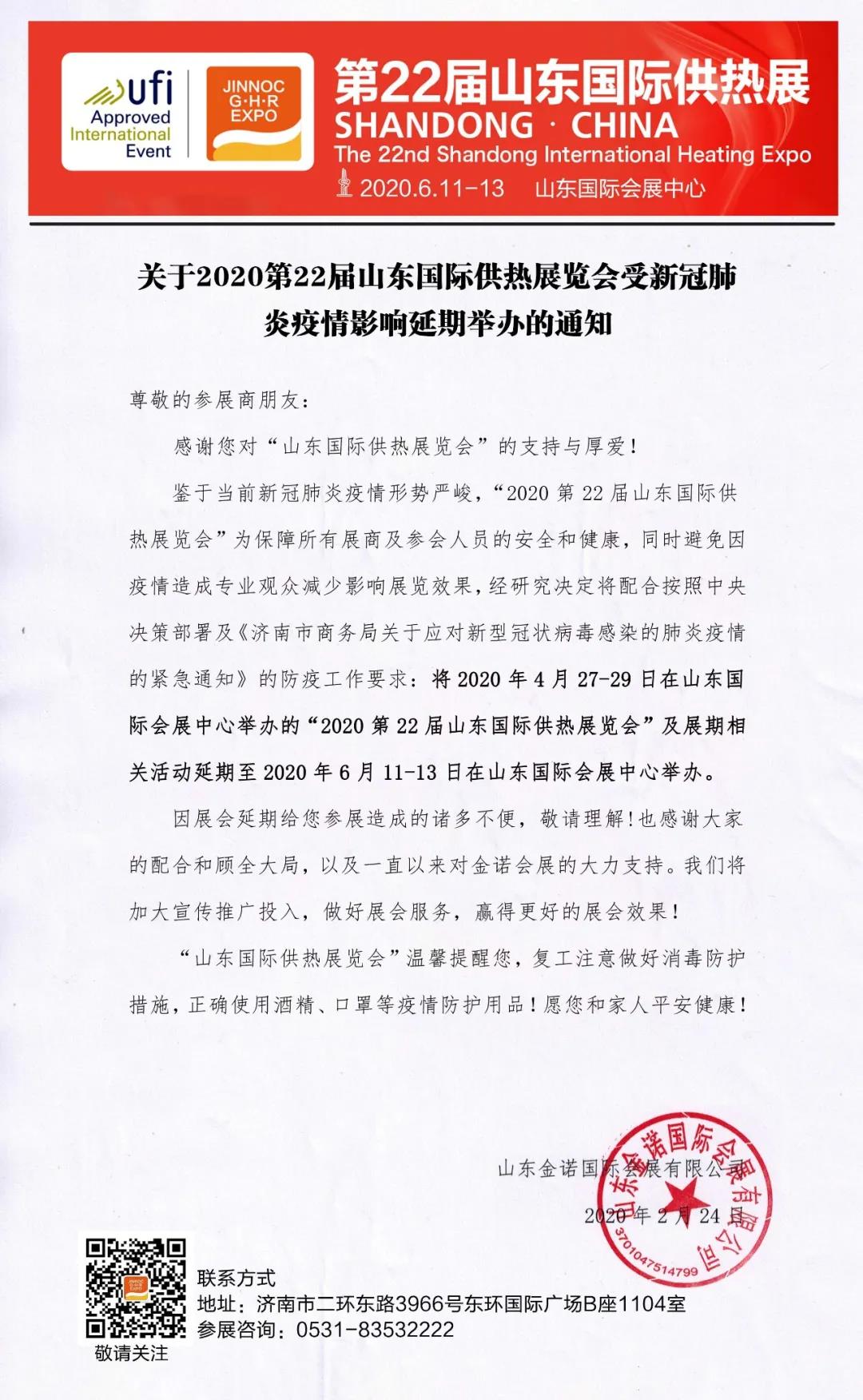 根據(jù)供熱展設(shè)計(jì)搭建公司領(lǐng)藝展覽了解到,受新冠病毒感染的肺炎疫情影響,第22屆山東國(guó)際供熱展延期至6月11到13日在濟(jì)南盛大召開(kāi)。如需供熱展設(shè)計(jì)請(qǐng)聯(lián)系領(lǐng)藝展覽,希望我們能在供熱展搭建上為您添磚加瓦,祝各位朋友收獲多多,滿載而歸!