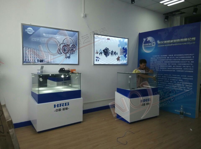 契合的哈軸品牌形象和產(chǎn)品特性,采用矩形結(jié)構(gòu),再搭配燈具燈光的效果,襯托出展位高端、時(shí)尚的氛圍,突出一種現(xiàn)代、歐美的時(shí)尚品味。